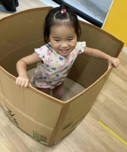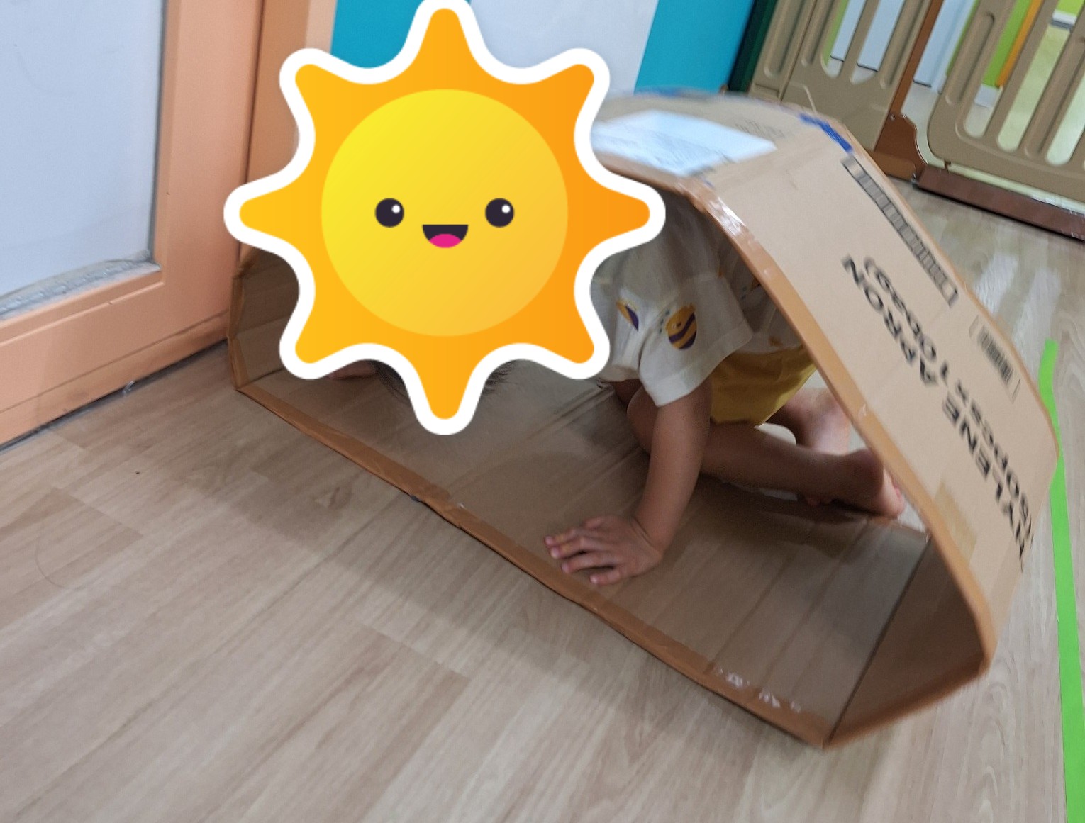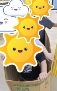 今日も段ボールで作ったキャタピラを使ってたくさん体を動かしていきましたよ!