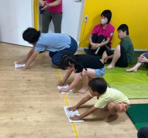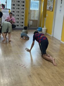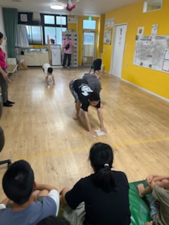 柔道場で体を動かそう!! りぼんU 2025.08.29 こんにちは。 8月28日(木)のりぼんUは前半は室内で2学期が始まるのお部屋をキレイにしよう!ということで雑巾がけリレーをしました✨みんな2往復もしてくれてキレイになりました♪ 後半は柔道場でマットゴロゴロやタッチラン、ボール運びなど様々な道具も使いたくさん体を動かし楽しみました(⌒∇⌒) りぼんU