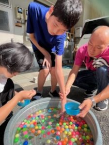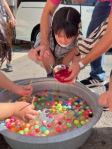 りぼんでは、射的、金魚すくい、ボール入れ、スイカ割りのお店があり、スタンプラリーで全部のお店を回ると、特別に素敵なお土産がもらえました🎵