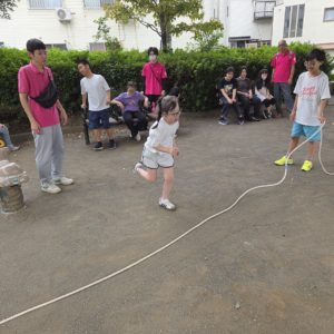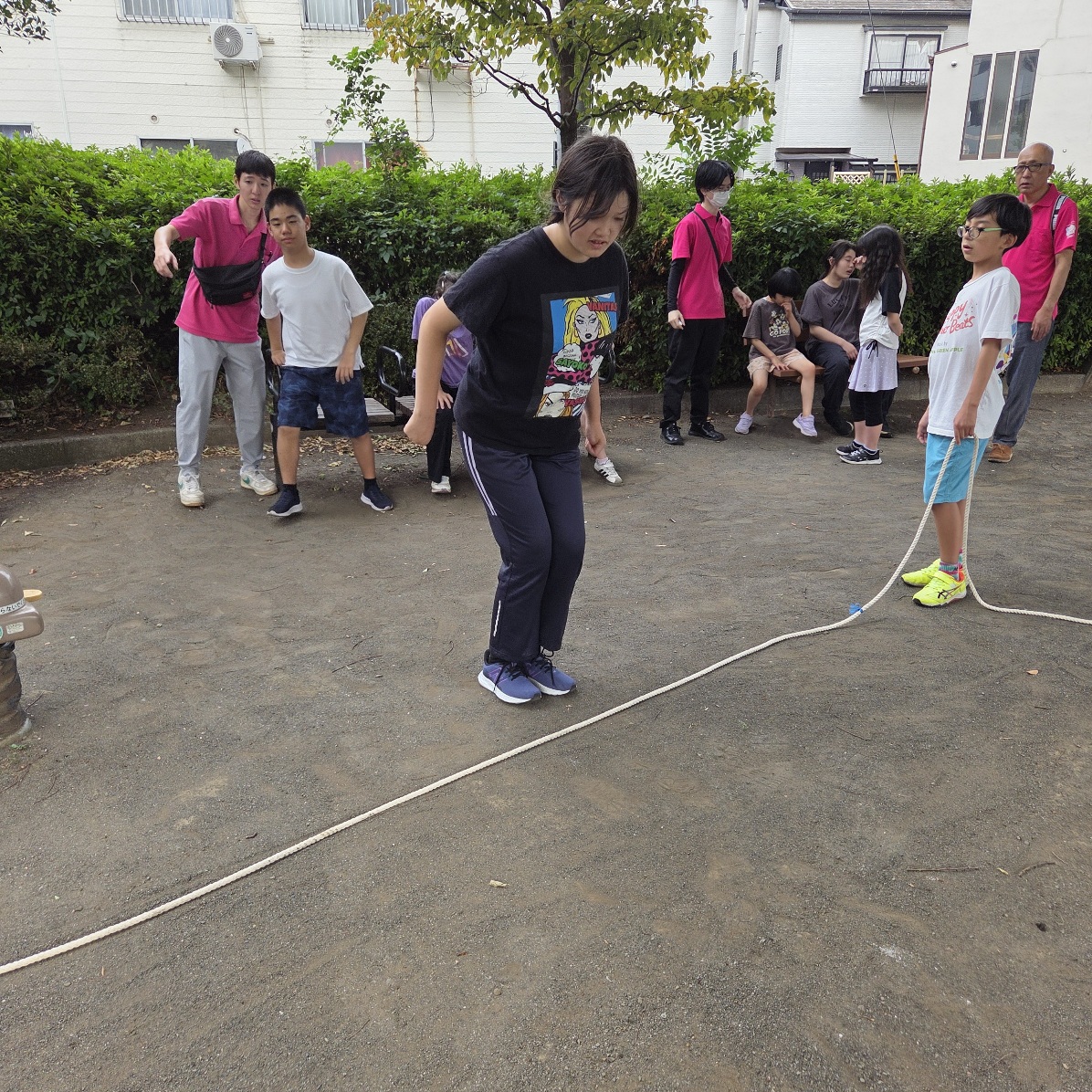 縄ジャンプ! りぼんU 2025.09.04 こんにちは。 昨日のりぼんUでは室内でお月見のぬり絵をしました。去年までは筆圧も薄く一色で塗っていたお友達も今年は色んな色を使ってカラフルにお団子を塗っているのをみてとても成長を感じることが出来て嬉しかったです。😊✨ 公園では縄ジャンプをしました!一人ずつ揺れている縄跳びをジャンプ!!ポーズをとりながらジャンプする子もいて楽しかったです♬ りぼんU