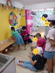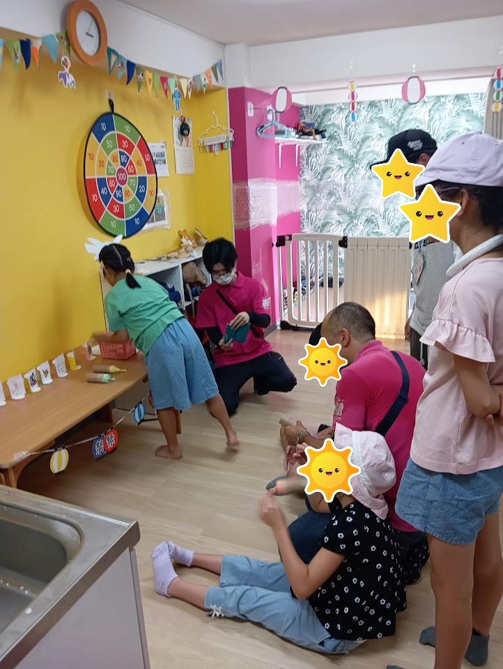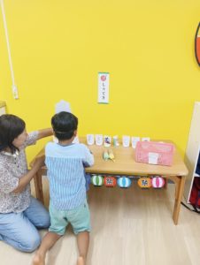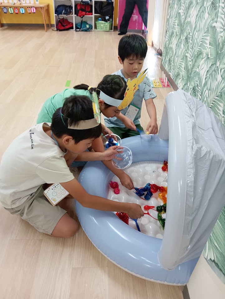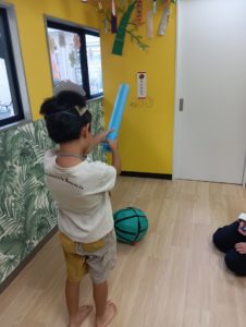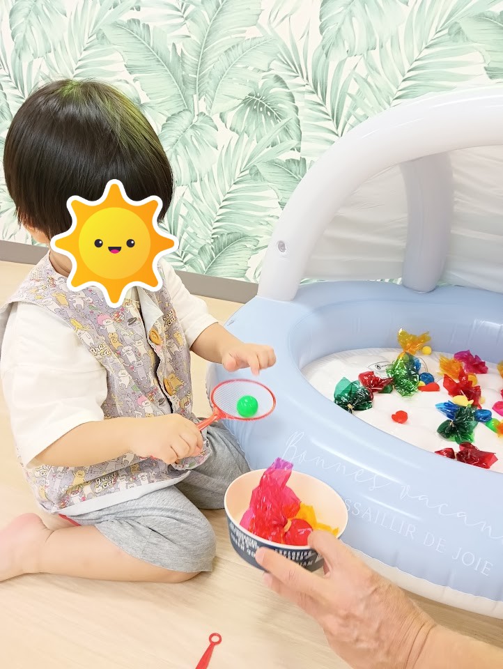 金曜日のりぼん りぼん 2025.09.05 こんにちは! 8月29日金曜日のりぼんは夏祭りをしました! コロコロ転がるボールも上手にすくうお友達です! 射的にも挑戦しました。 午後はりぼんUのお兄さんお姉さんも遊びに来てくれて りぼんのお友達は屋台の店員さんにもチャレンジしました! 金魚すくいや射的、すいか割り 魚釣り、風船投げなど夏休みの最後にみんなで楽しみました(*^-^*) りぼん