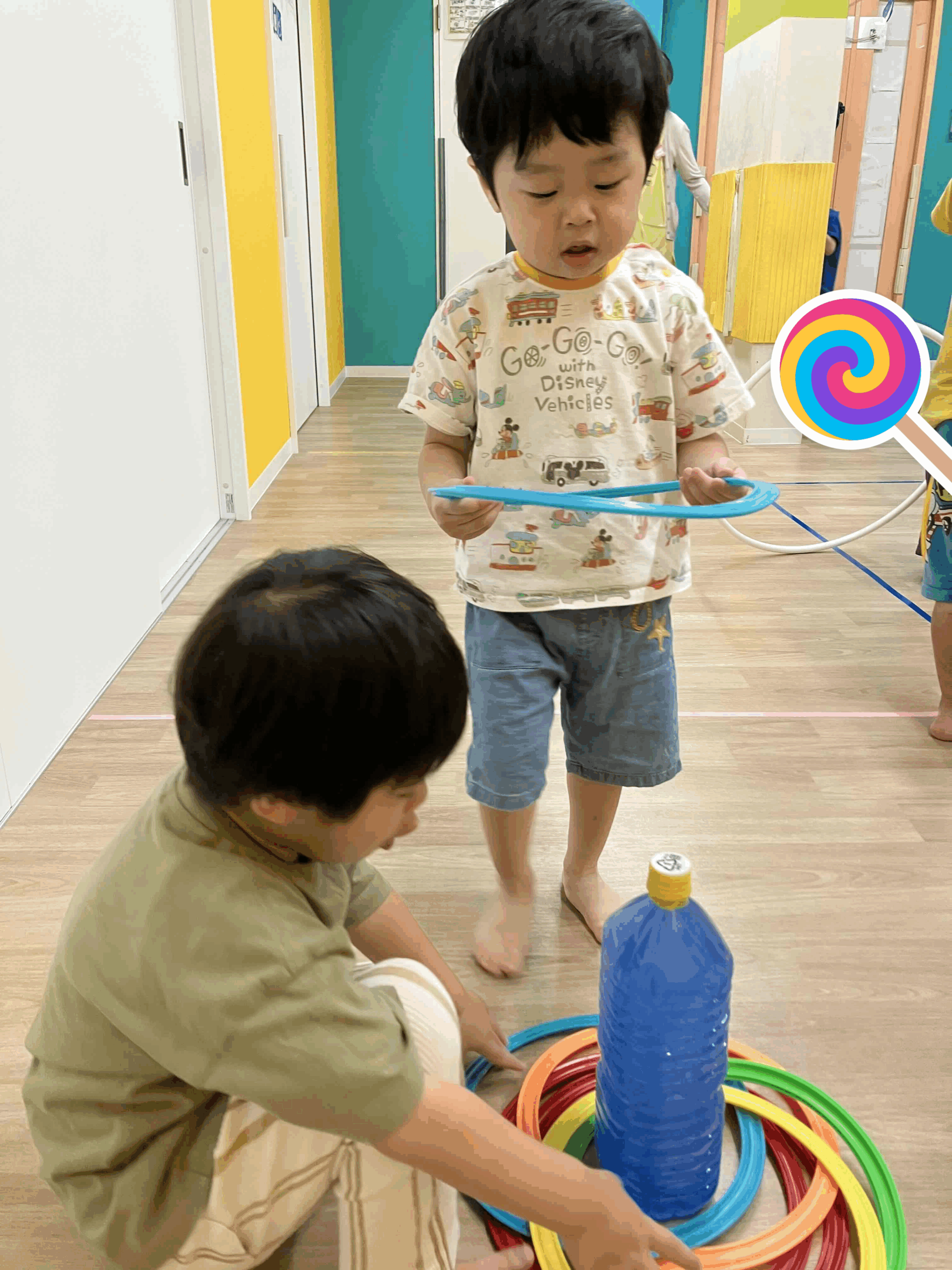 土曜日のワクワク上石神井の様子です☆ ワクワク上石神井 2025.09.08 こんにちは! 今日で色おに最終日でした。 「鬼につかまるよ~~」なんていうと、 「きゃ~~」と大喜びで可愛いお友だちです(^^)/ 時には鬼役をお友だちにやってもらいました! 鬼役がとっても上手なお友だち。 逃げているお友だちも嬉しそう♪ その後はフープ遊び。 電車ごっこ、フープくぐり、輪投げなどして遊びましたよ。 「こうやって入れるんだよ」 「なるほど~~」 午後は個別活動と風船遊びをしました。 自分のコマにシールを貼って回して遊びました☆ 風船にタッチ! ワクワク上石神井