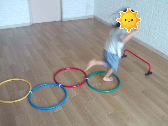 今日のサーキットは、フラフープジャンプとハードルをしました。