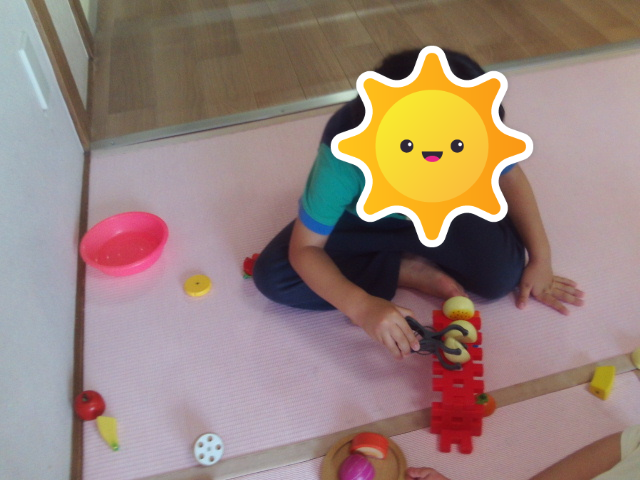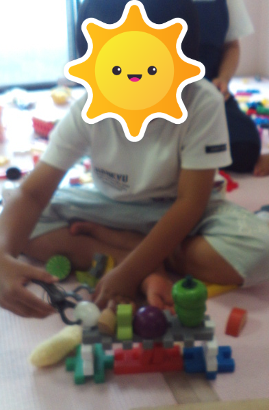 友だちと丸くなって、ニューブロックの焼き台の上でおままごとの