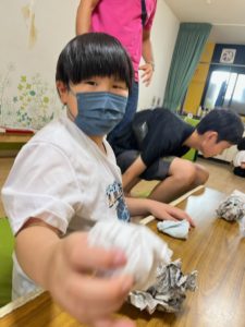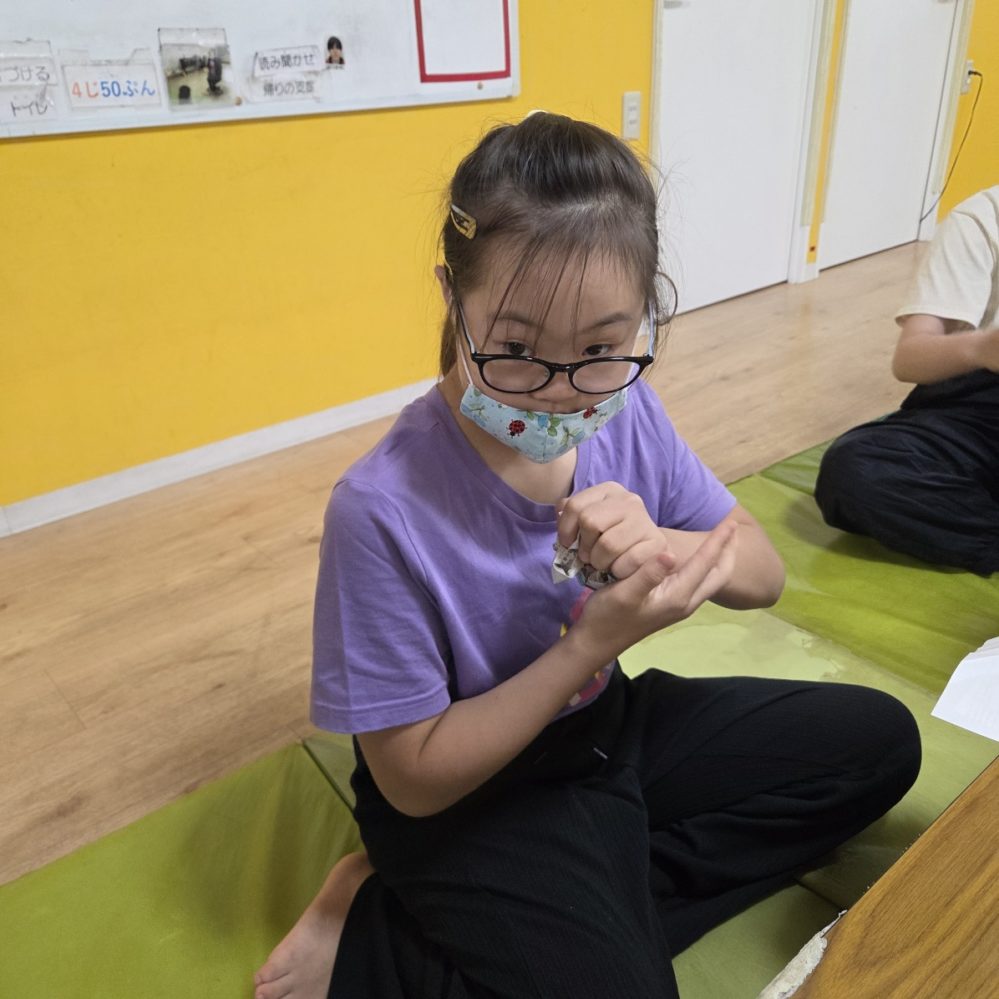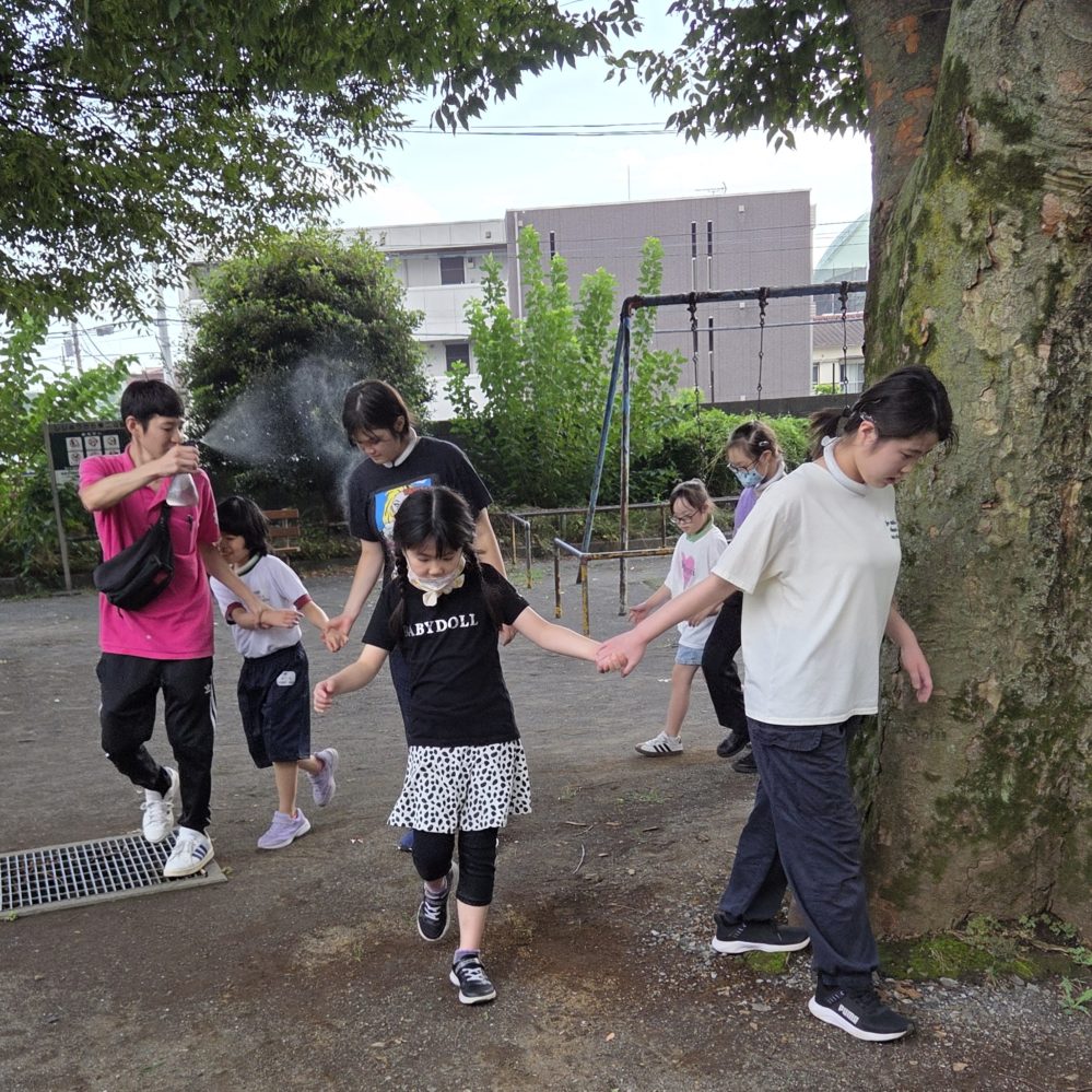 手つなぎラン! りぼんU 2025.09.10 こんにちは。 今日のりぼんUは室内活動と公園活動をグループに分かれて交互に行いました。 室内ではお月見のお団子つくり🎑新聞紙を丸め更に外を白い紙で包む制作をしたのですが両手でギュッギュッと、ひとり2個作る予定がそれ以上に頑張ってつくってくれました🎵 公園では手つなぎラン!お友達と手をつなぎ、お兄さんお姉さんは小さい子のペースを見ながら上手に走って(歩く?)くれました😊✨ りぼんU