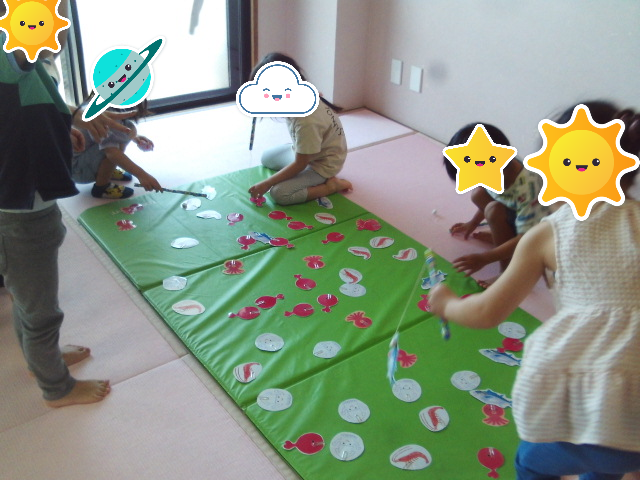 魚釣り! ワクワク 2025.09.17 こんにちは🌞 魚釣りの様子です↓ 狙いを定めてそっと釣竿を動かし、好きな海の生き物を釣る姿がありました。 釣った後は釣竿から生き物が落ちないようにゆっくりと歩き、 生き物それぞれのイラストが貼ってあるバケツまで持っていきました。 バケツのイラストをよく見て、正しいところに生き物を入れてあげることが できました🐠 午後の時間、お友達と一緒にはいチーズ📷 可愛い&かっこいいポーズで写ってくれましたよ! せんかわ
