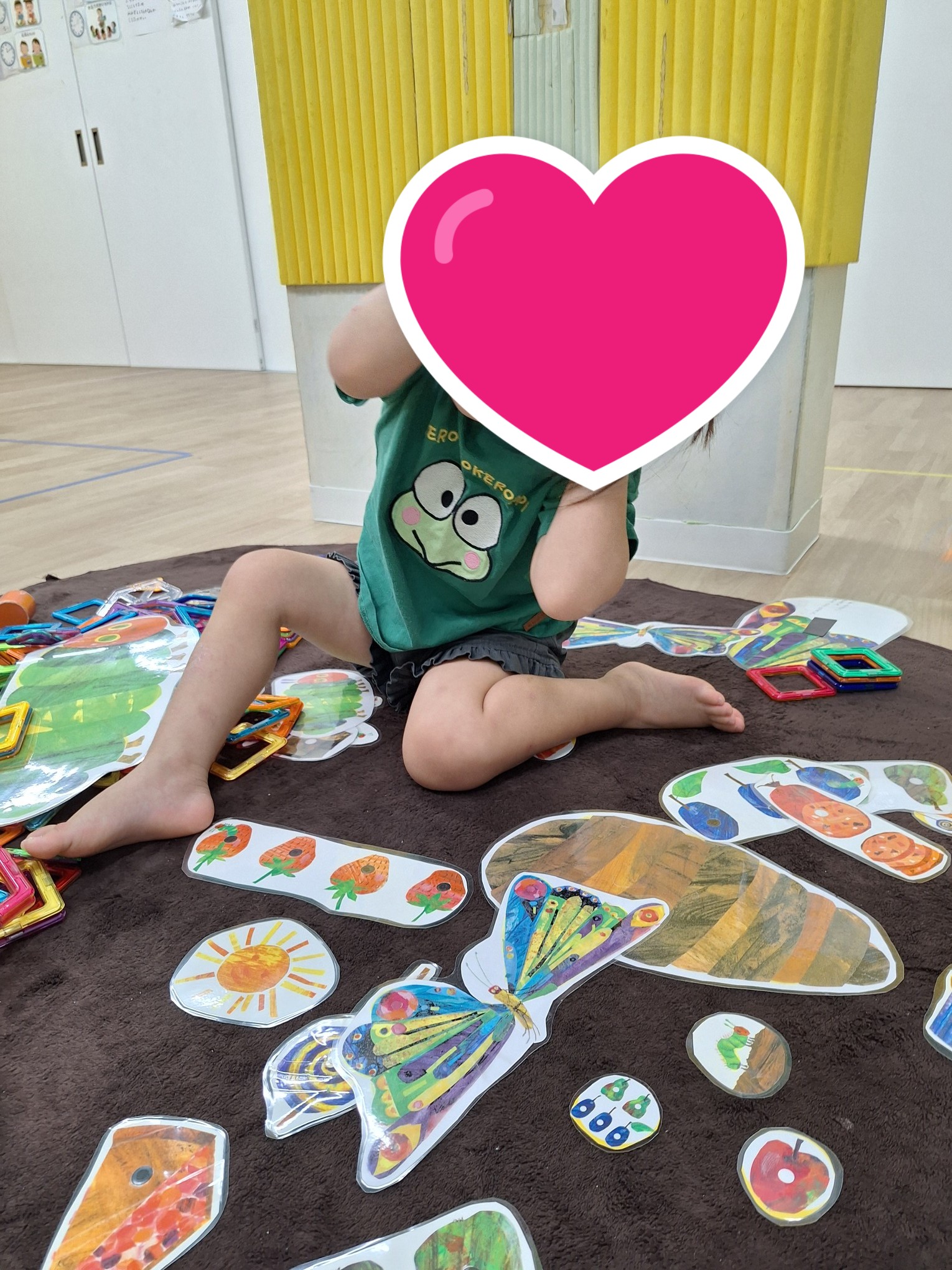 コーナー遊びでは、積み木、磁石などで遊びました。