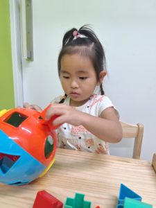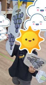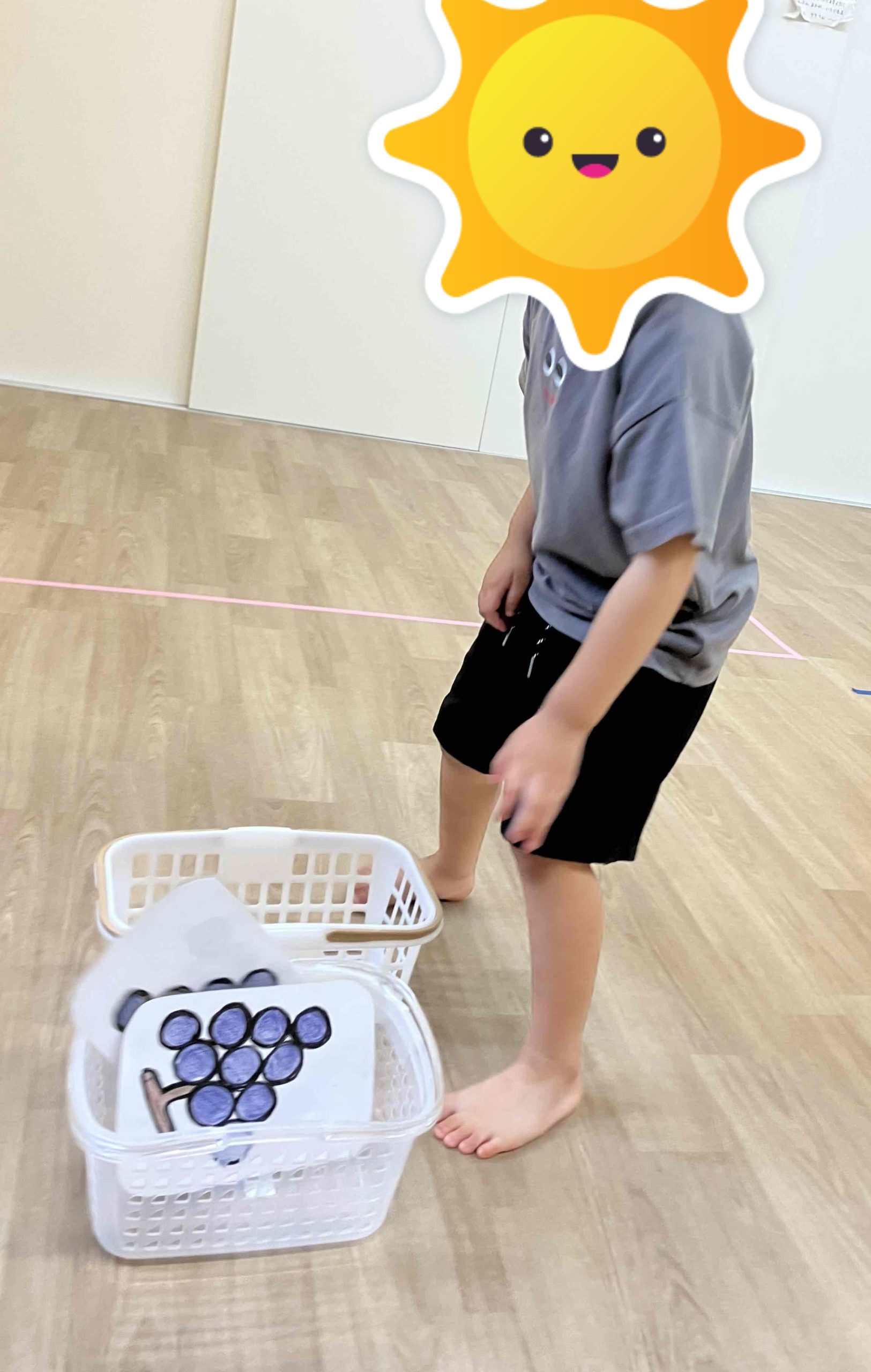今日の午前の活動は、果物マッチングをしましたよ。今週の活動で行っていて少しずつルールを理解して上手に同じ果物を見つけてとれるようになりました。同じカードを見つけて笑顔で果物狩りをする姿は、とてもかわいいですよ。果物のカードを取ってカゴに入れることも上手になりました。