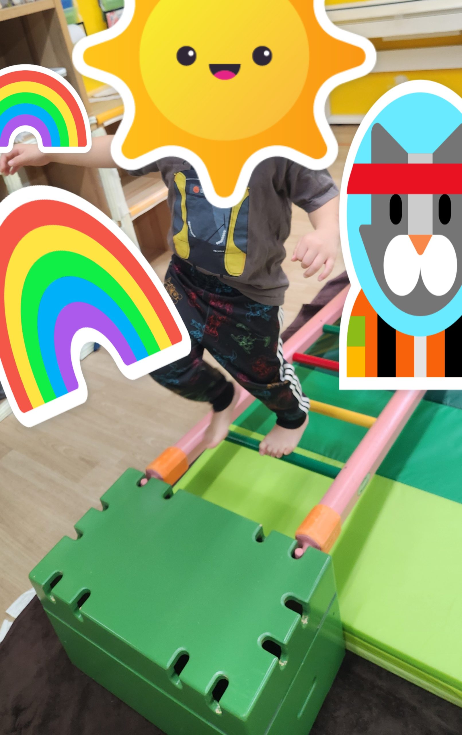 今日は、坂のはしご、バランスストーン、トランポリンを使って体を動かしました!