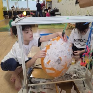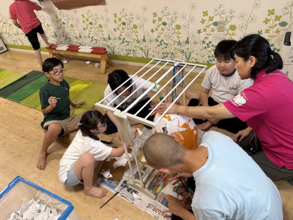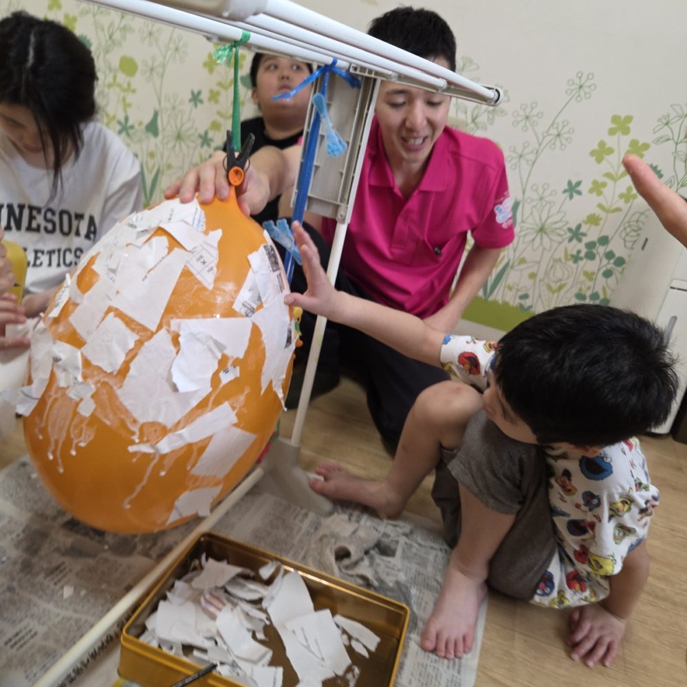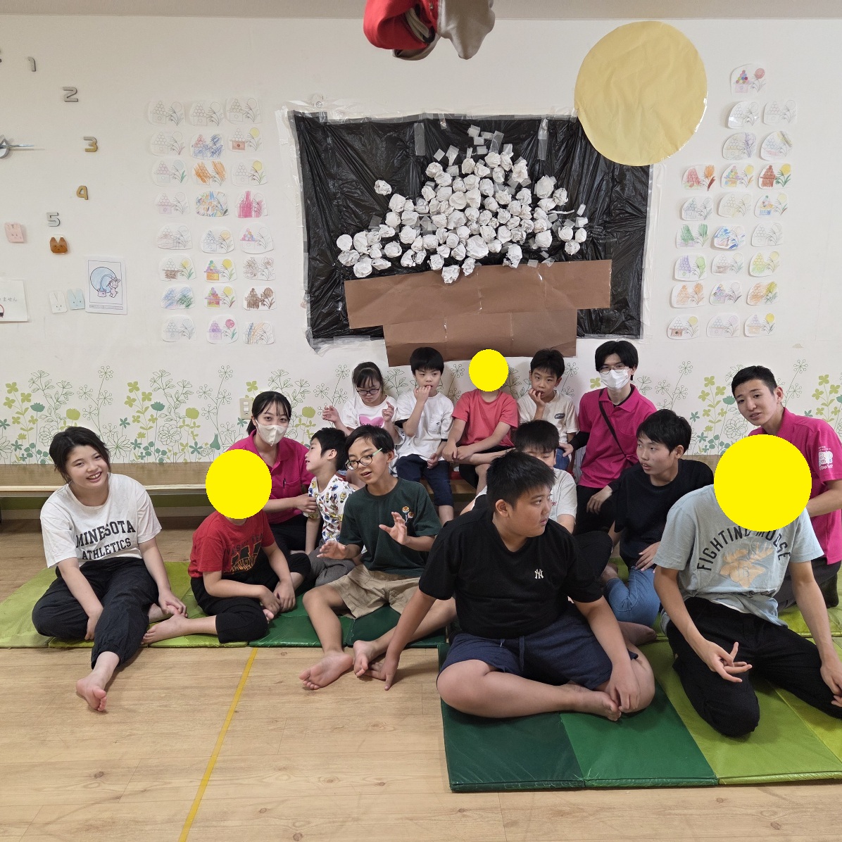 ピニャータ紙貼り! りぼんU 2025.09.30 こんにちは。 昨日のりぼんUは初めに壁面制作のお月見のお団子の前でパシャリと記念撮影📷その後室内でピニャータの紙貼りとお絵描きをしました🥚紙貼りでは筆を使って糊を付けて風船にペタッと、中学生のお兄さんお姉さんはベテランなので上手に何枚も貼ってくれました😊✨ 後半は公園で冬に向けての体力づくりでマラソンをしました!りぼんUでのマラソンの活動もみんな慣れてきたのか自分のペースでどんどん走れるようになりました♡ りぼんU