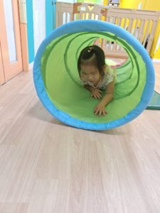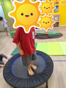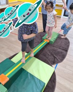 サーキットでは平均台、トンネル、トランポリンを使って体を動かしていきました。