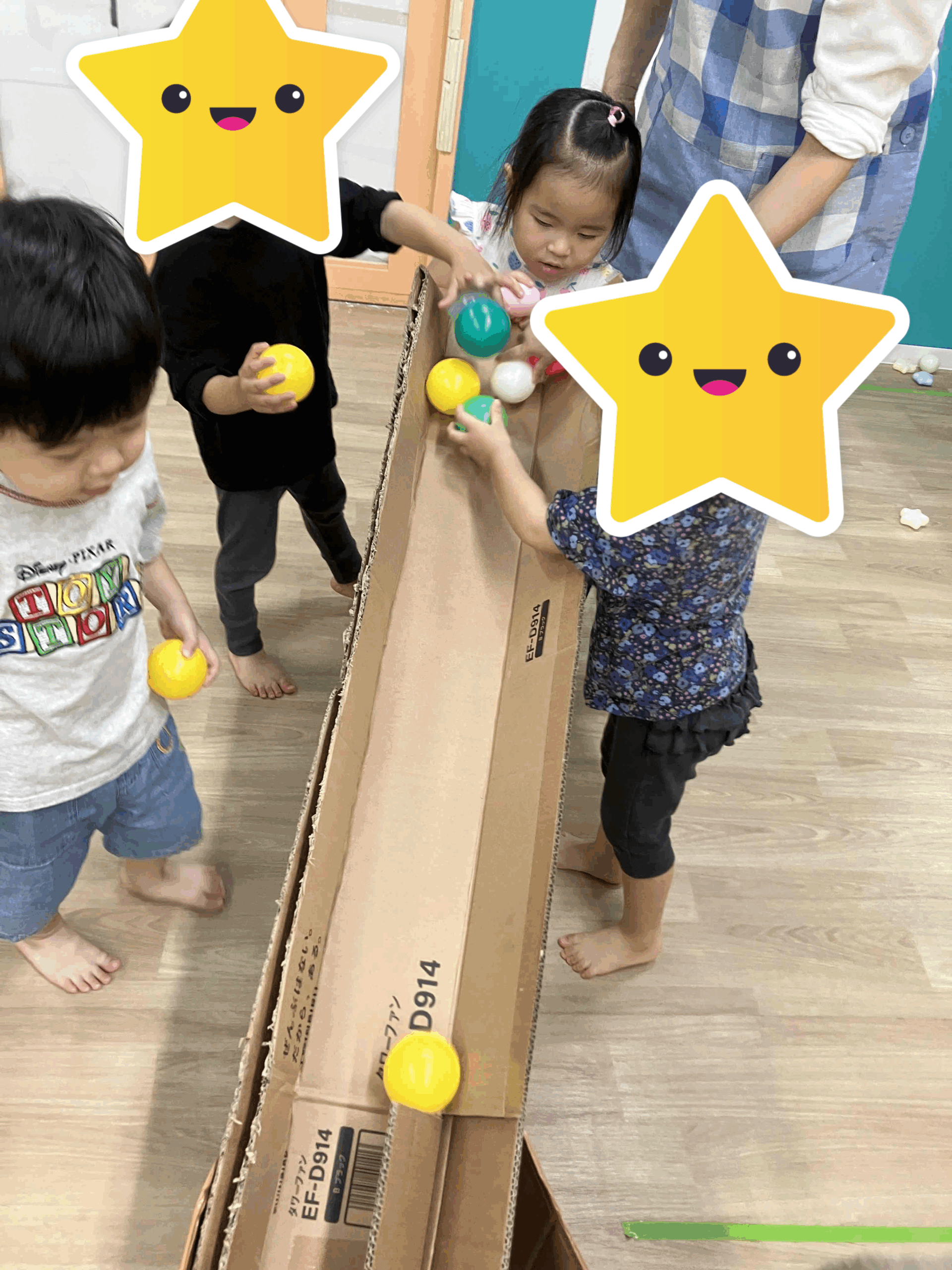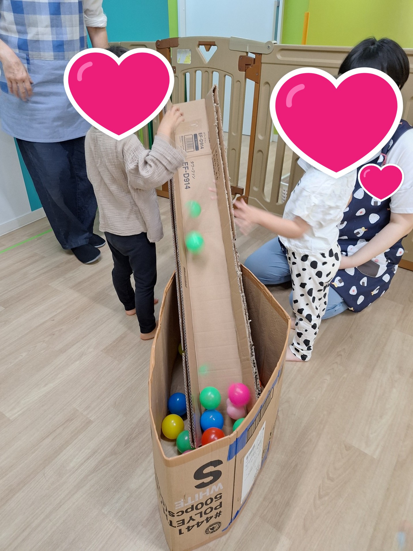 その後は段ボールとボールで遊びました。
