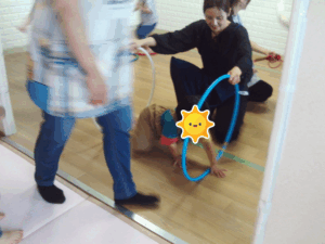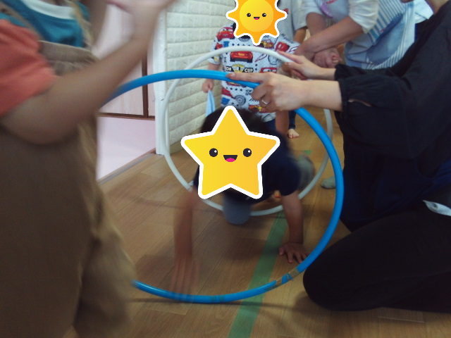 フラフープのトンネル♪ ワクワク 2025.10.01 こんにちは! 室内遊び❛大繩&ケンケンパ&トンネル❜の様子です↓ 身体を小さくかがめてフラフープのトンネルを潜りました! 大繩は、へびや波のように動く縄に当たらないようにタイミングを 合わせてジャンプ☆彡 「(縄の動きを)もっと早くして!」と挑戦しようとするお友達もいましたよ😊 また、バスごっこでは歌に合わせて順番にバス切符を隣の友達に渡していきました。 切符が最後まで渡った後は、フラフープバスに乗ってお部屋を回りました🚌 せんかわ