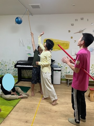 ジャンプしてタッチする風船🎈を持つ係を、子どもたちが交代でやってくれました😊