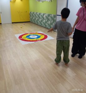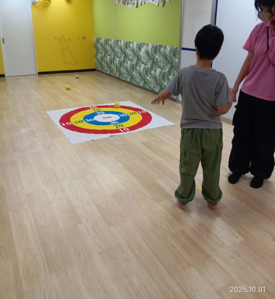 みんな的に向かってボールを投げて楽しみました(*´ω`)
