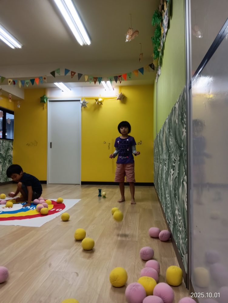 おやつの後はボールころがしをして少し体を動かしました。