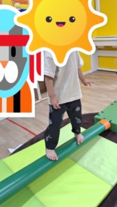 平均台では今日も難しいバージョンで行っていきました。大きいお友だちはバランスをとりながら一人渡っていました!