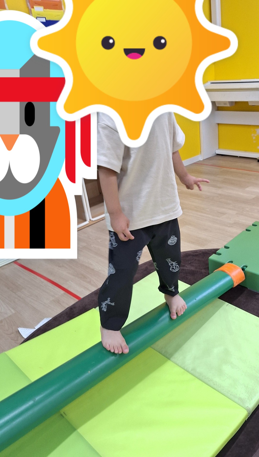 今日は平均台・バランスストーン・感触マットで体を動かしていきましたよ。