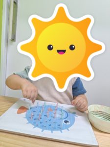 その後はボール遊びをしましたよ。的に向かって投げたり、ボールを転がしたりしながら遊んでいきました。