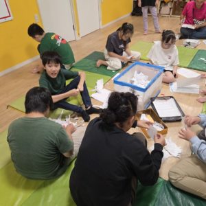 ボンドで貼る作業も、中学生を中心に、とても集中して行えています♪ 手先を使った制作や作業が好きな子にとって、楽しい要素が多いようです(笑)