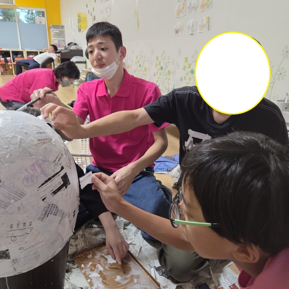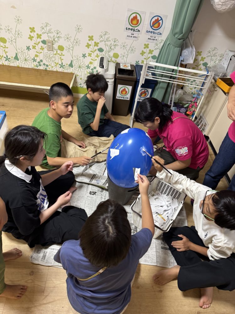 今日のりぼんUはピニャータ作りの紙貼りをみんなでがんばりました!風船に紙を密着させないと乾いたときにへこんだり破けてしまうので丁寧に作りました!みんなで『紙くださーい』や『ボンドがないのでくださーい』など声を掛け合い協力しながら頑張ってくれたのでとてもキレイに仕上がりました👐