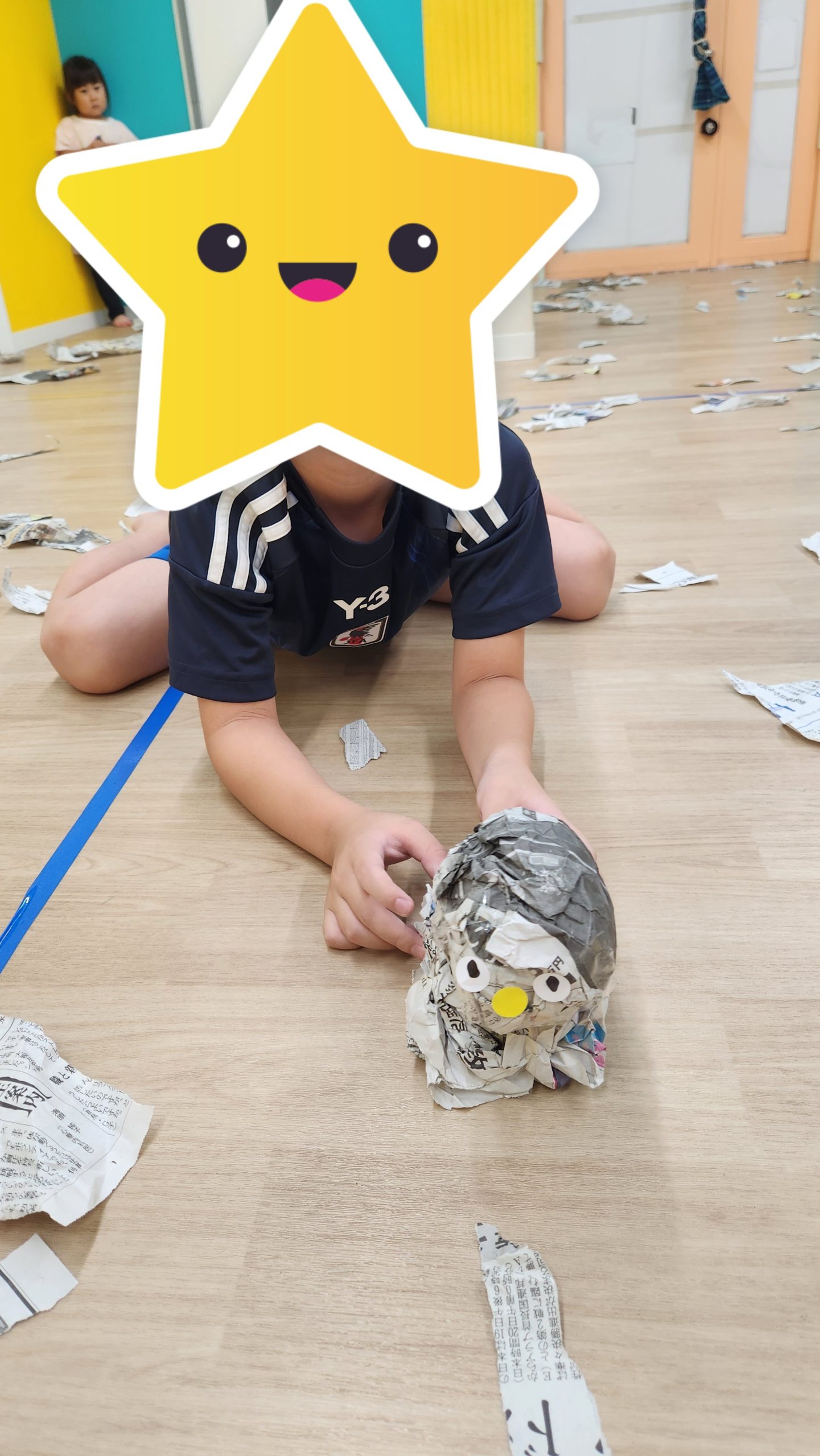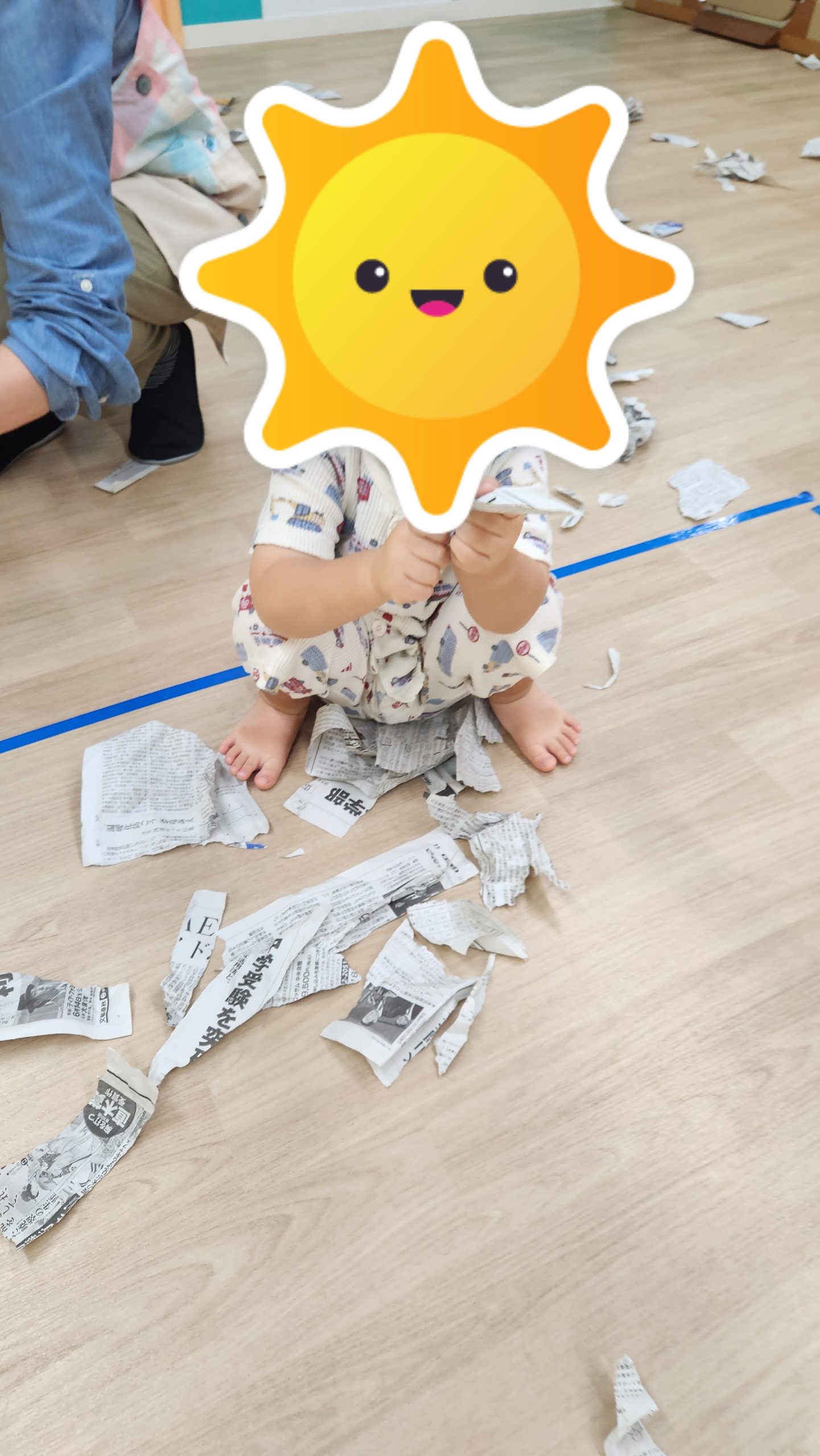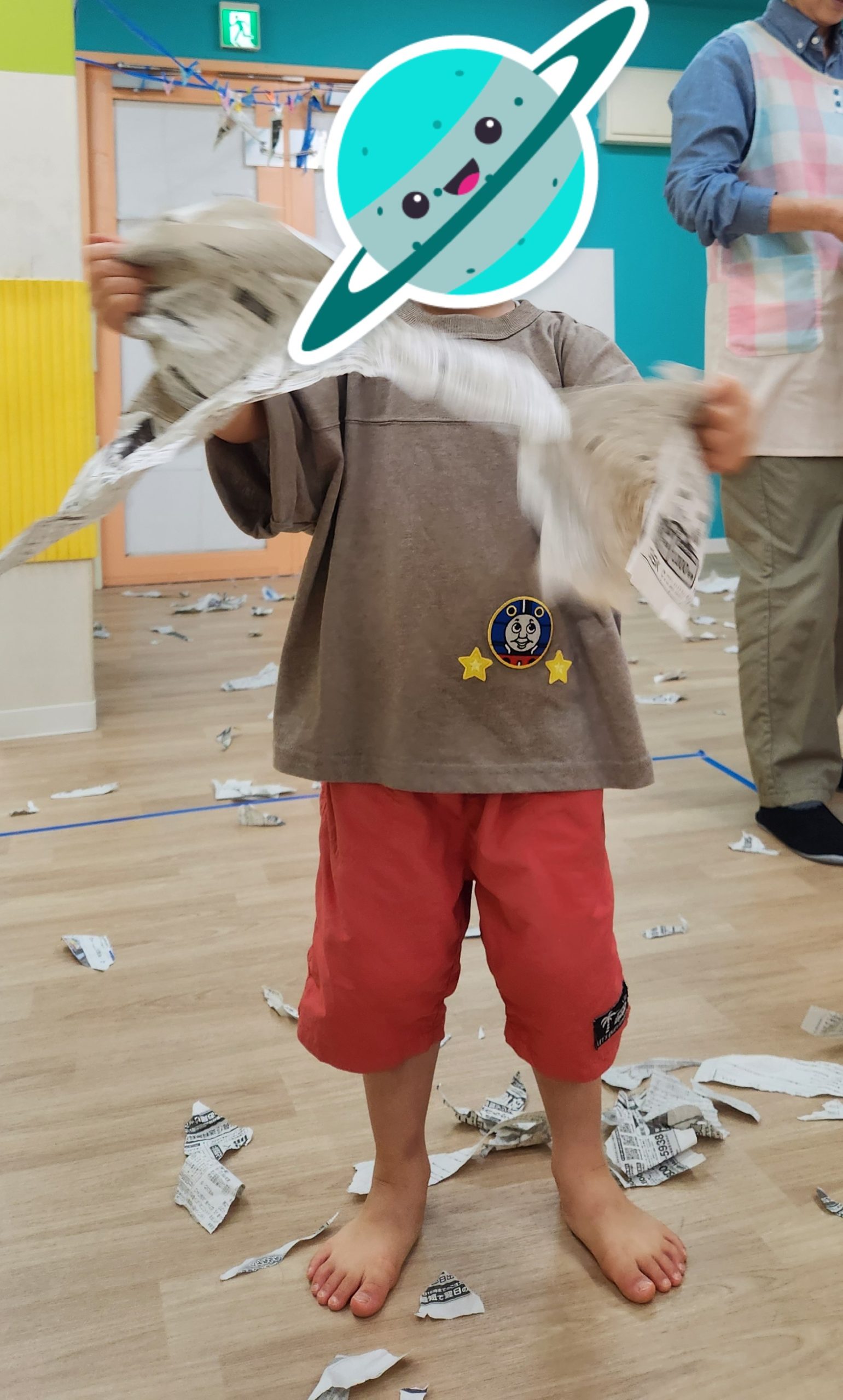 その後は新聞紙遊び。