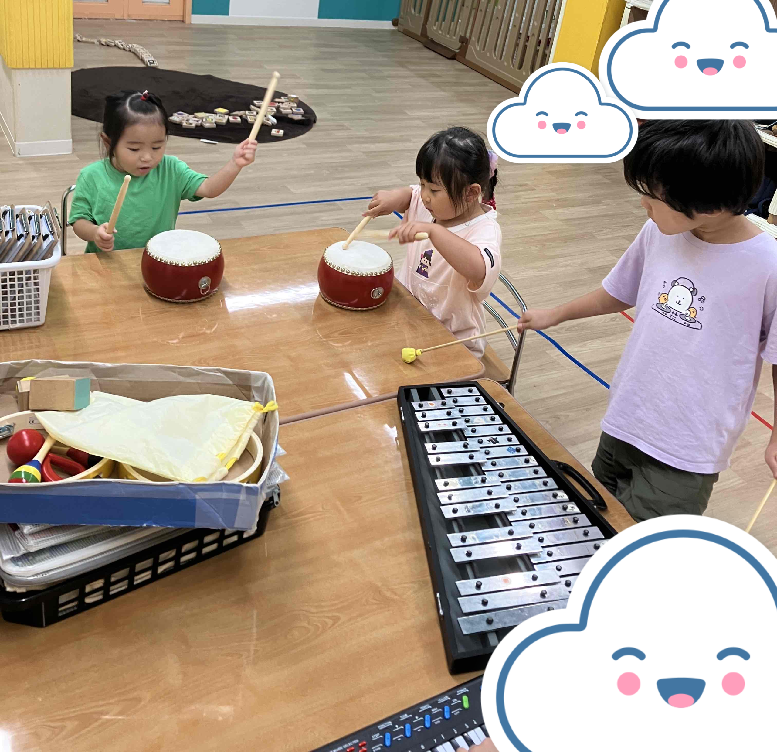 コーナー遊びでは、パズル、積み木、楽器を出しました。