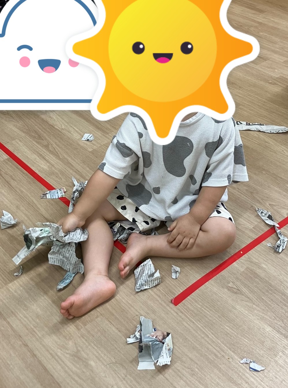 午後は個別活動と新聞紙遊びをしました。新聞紙遊びでは、ちぎったり、剣やほうきを作ったり、飛行機を作って飛ばしたりして過ごしました。