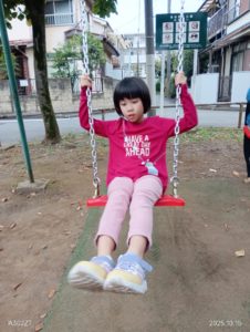 雨が降ってくる前の短い時間でしたが、好きな遊具で遊びました(^^♪