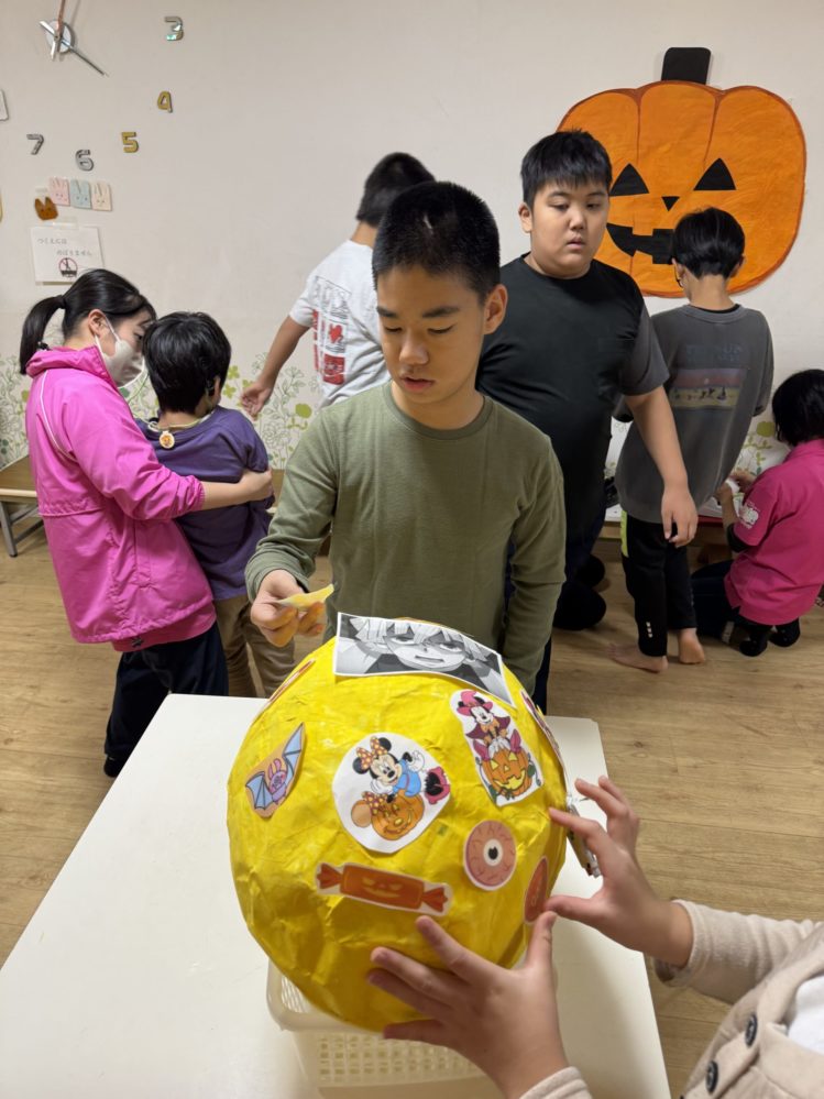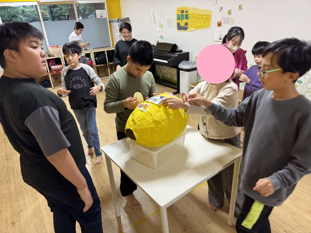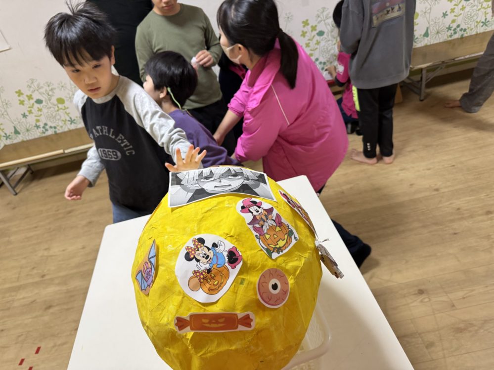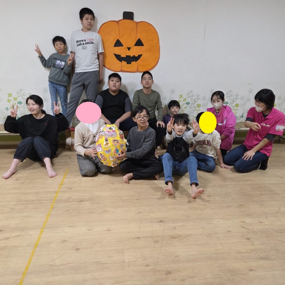 ピニャータかざりつけ🎃 りぼんU 2025.10.22 こんにちは。 昨日のりぼんUではみんなでピニャータの飾り付けをしました👻🎃キャラクターや紙をクルクル巻いたものなど好きなものをニコニコで貼っていました😊✨仕上がったピニャータと一緒に記念撮影📷 飾り付けが早く終わったので久しぶりに公園に遊びに行きました🎵長~いロープをみんなでジャンプ!ジャンプ! りぼんU