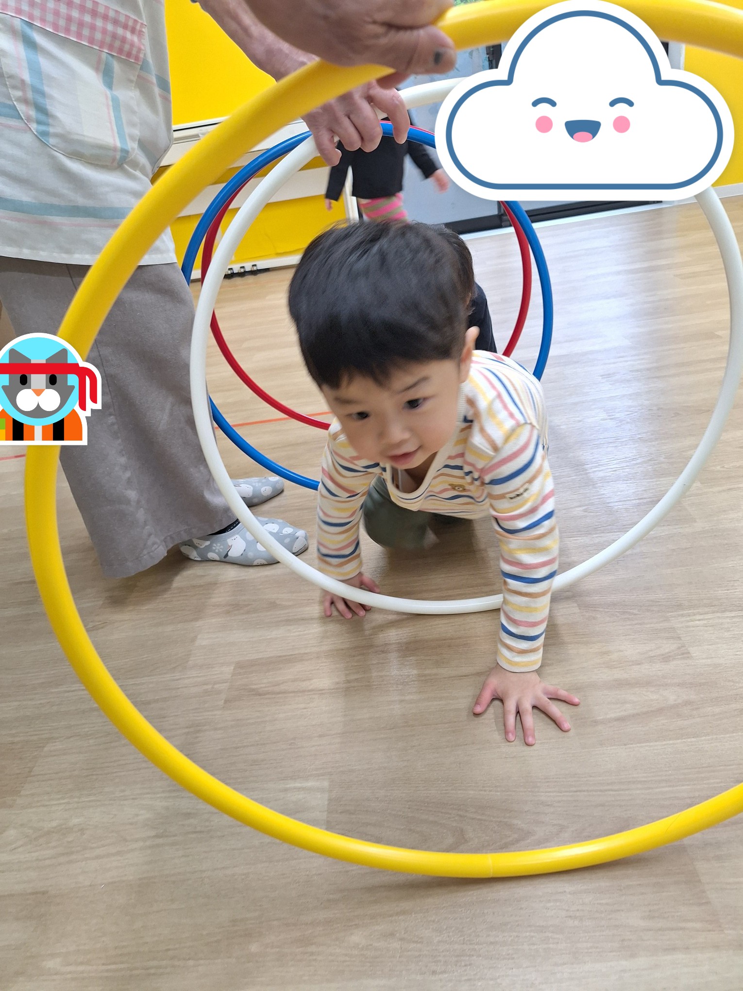 今日のワクワク上石神井の様子です☆ ワクワク上石神井 2025.10.23 こんにちは! 朝晩の冷え込みが一段と厳しくなっていますね。 みかんとこたつが恋しいですね。 さて、今週の活動「避難訓練」を本日も行いましたよ! 先生の説明を聞いて、みんなで柱の前に集まっています。 防災頭巾をみんな被って、上手に避難できましたよ。 その後はフープ遊びです。 電車ごっこや、フープを回したりくぐったり。 午後は個別活動とボール遊びです。 数字とボタン付けの練習をしました☆ ワクワク上石神井
