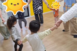 お友だちや先生と手をつなぐ練習を、みんなで楽しみながら行いました。