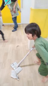 掃除機を作って遊んだり、ちぎって紙吹雪をして遊んだりしました。