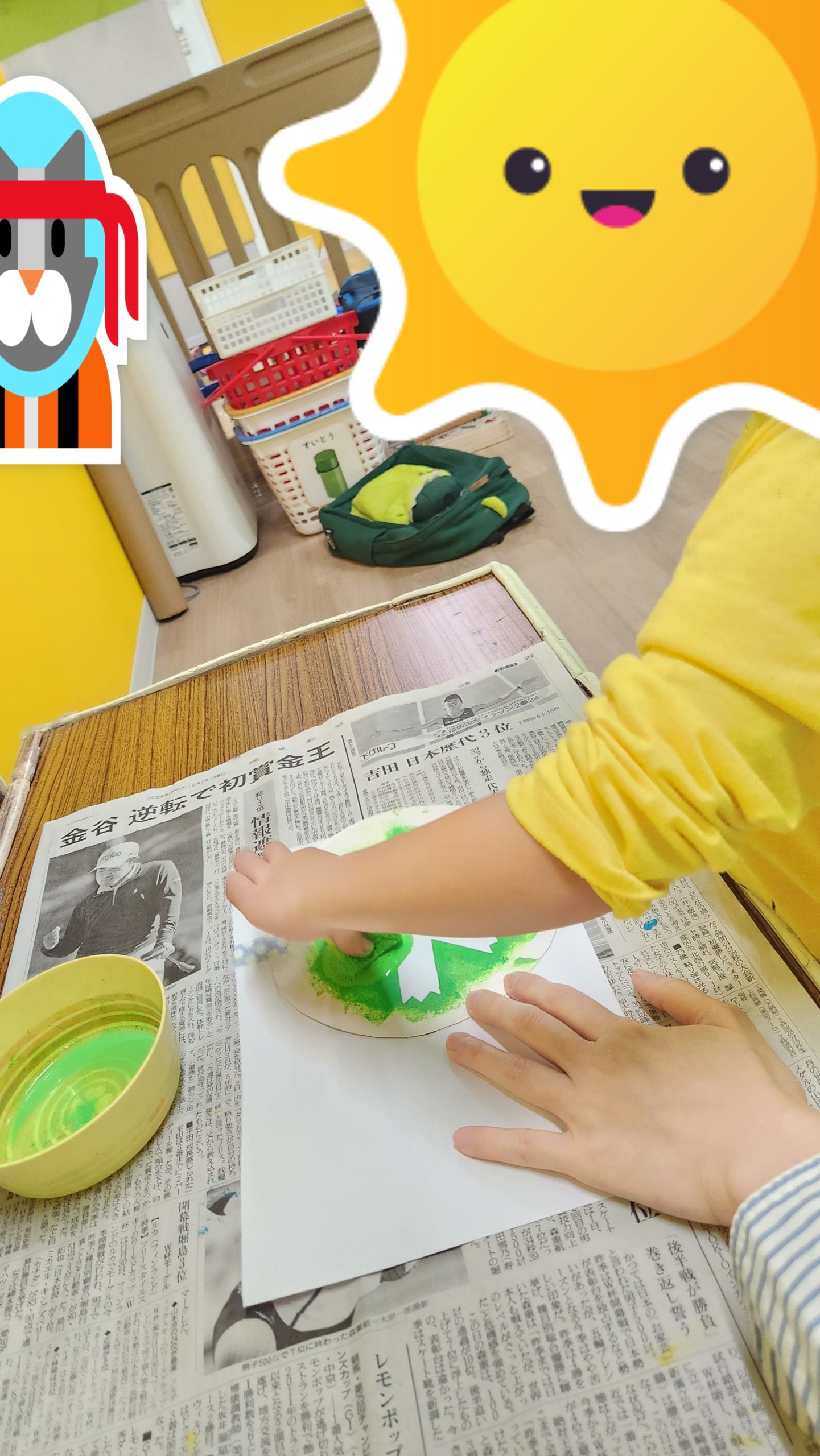 10月の製作のコスモスを行いました。絵の具とスポンジを使って行っていきましたよ。スポンジや絵の具の感触も楽しんでいきました♪苦手なお友だちもスタッフと一緒にがんばりましたよ!
