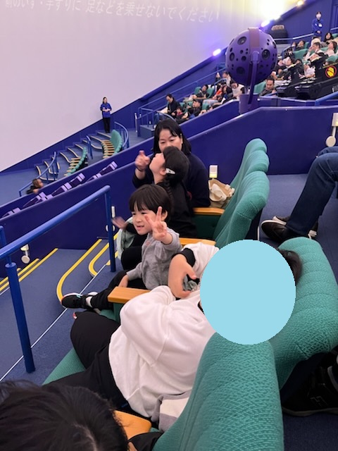 六都科学館へ行く🌎! りぼんU 2025.10.25 今日は、晴れたらお芋堀りの予定でしたが、雨でしたので、みんなで六都科学館へ行ってきました☆ りぼんUに来るのが久しぶりのお友達も、楽しく昼食を摂ってから楽しみにして出発🚙✨しました! 現地では、様々な展示物で遊んだり、体験コーナーで不思議な体験をしたりと盛り沢山で、びっくりしたり&楽しかったりで、笑顔が見られていました😊✨ ムーンウォークという、月面体験の乗り物にもチャレンジするお友達もいましたよ🌔! 最後は、シアターで、みんなで恐竜の大型映像を楽しんできました🦕🎵 りぼんU
