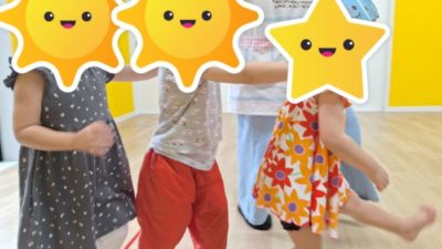 「こんなことできるかな?」の歌に合わせて、スタッフの動きを真似していったよ!