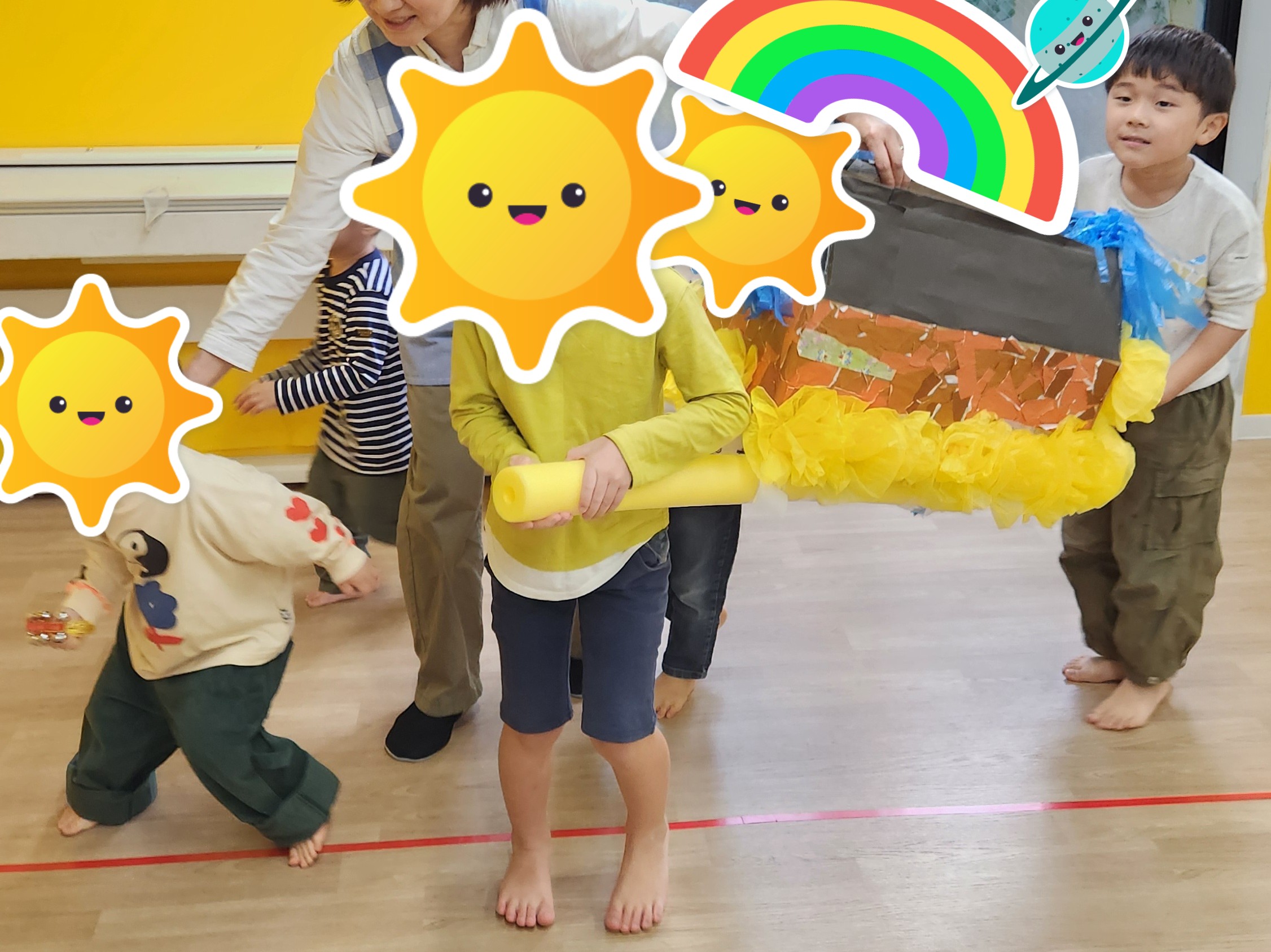「お神輿わっしょい!」 お神輿を担いでいないお友だちは楽器を鳴らしていきました☆