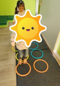 その後はボール遊びを楽しみましたよ♪傘目がけてボールを投げていきました。どのぐらいの強さで投げると傘に入るのか、考えながら何度も投げていました!