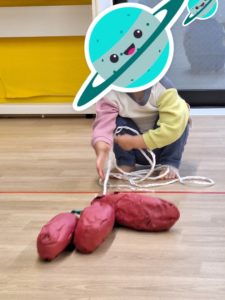 お芋を引っ張って、手繰り寄せる練習です。