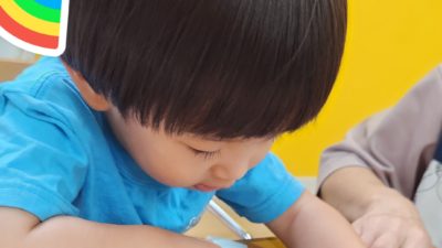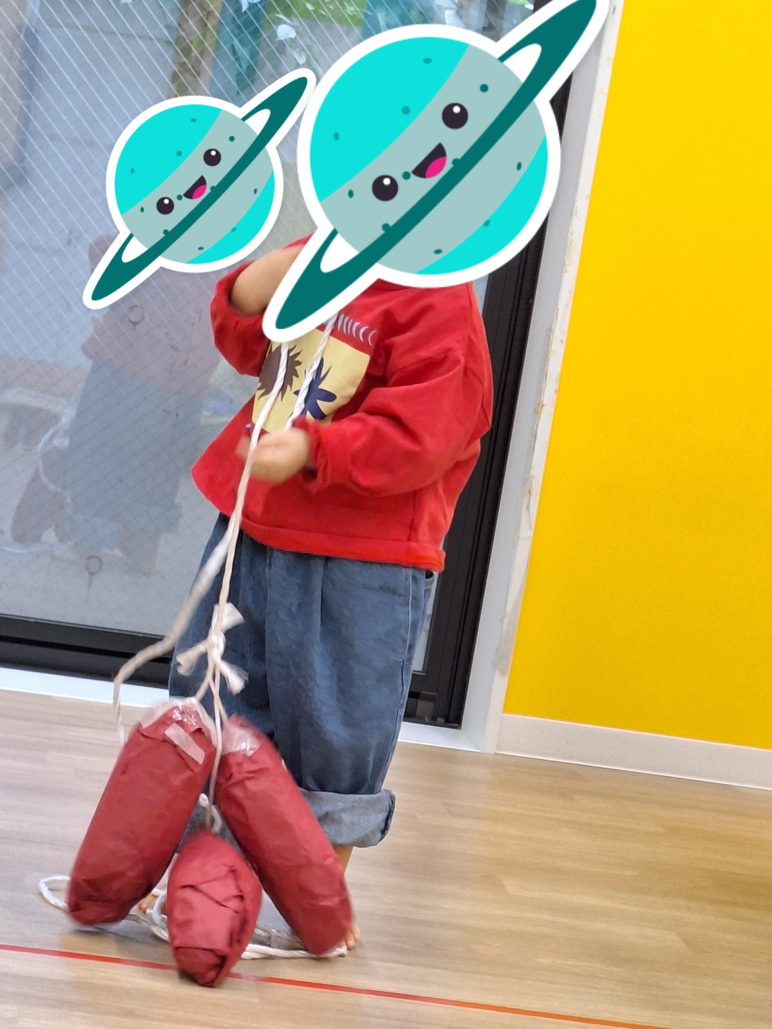 スタッフと一緒にやったり、おともだちの声援を受けて