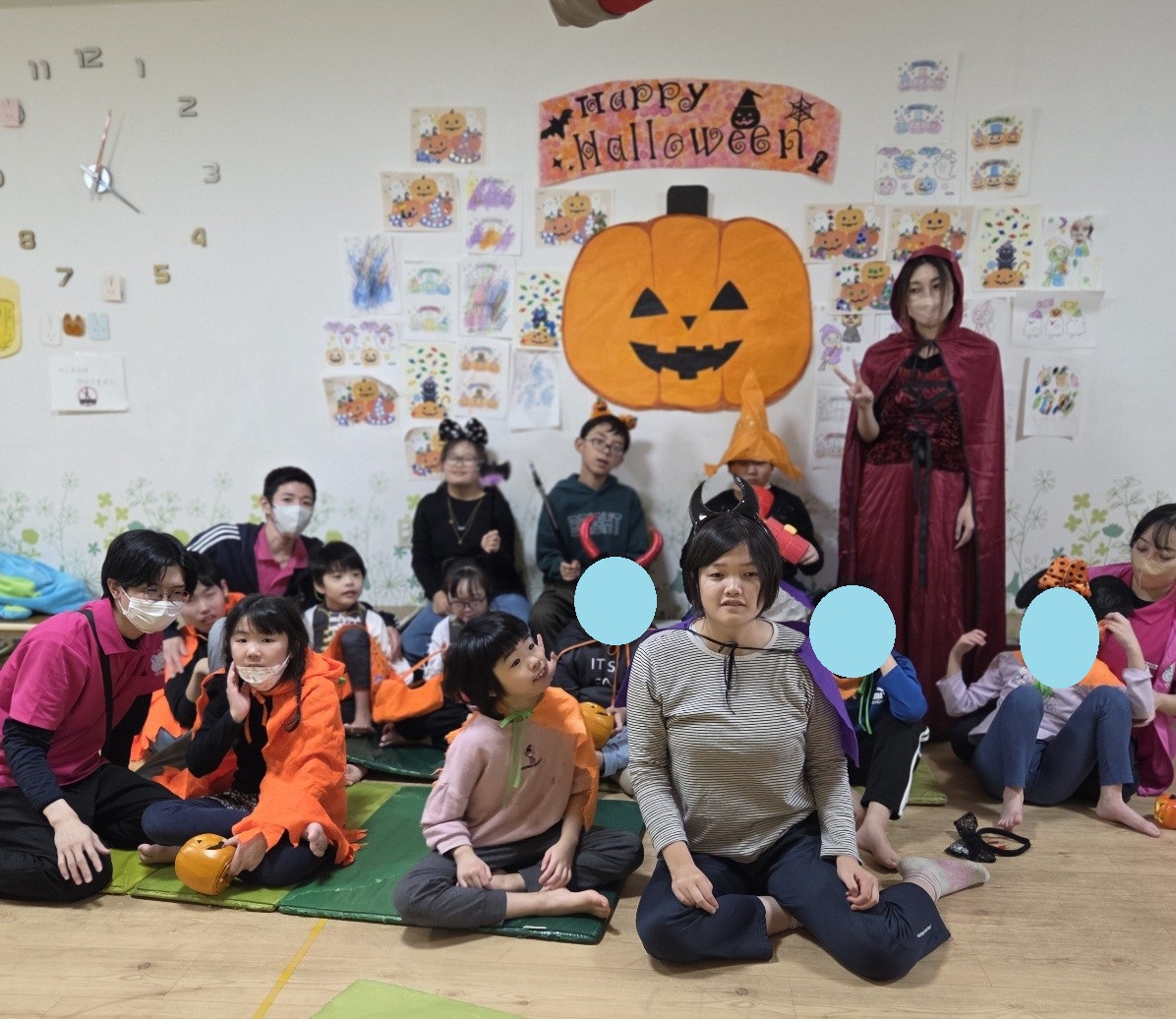 🎃ハロウィンウィーク🎃! りぼんU 2025.10.30 今日は、早く来所する子が多かったので、しじゅうから第二公園に行ってのびのびと体を動かしてきました😊! 秋を感じる空気の中、とっても気持ち良さそうでした🍂 🎃ピニャータ割りでは、ジャンプして思いっきりハンマーで叩くのが楽しくて、笑顔が沢山見られました✨✨割れた途端に歓声が上がっていました(笑) りぼんU