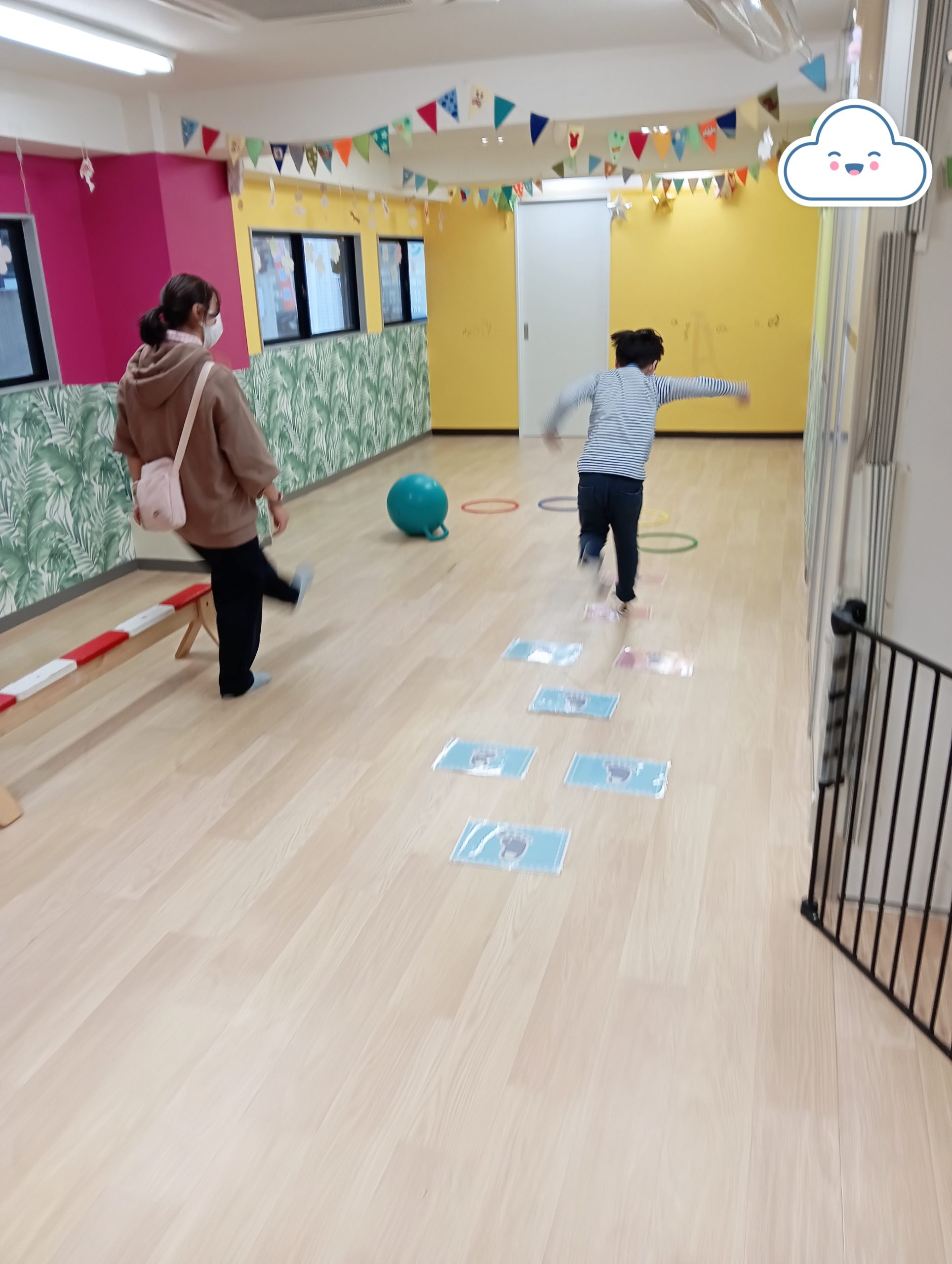 木曜日のりぼん りぼん 2025.10.31 こんにちは! 10月30日木曜日のりぼんは ジャンプサーキットと公園あそびをしました。 今回のサーキットはジャンプ動作をメインにしたものでしたが みんなリズム良くいっぱいジャンプをしました! サーキットの後、すぐに公園に遊びにいきました(^^)/ 短い時間でしたが外遊びを楽しんだりぼんでした。 りぼん