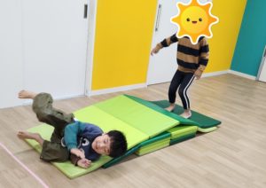 今日は、はしご・ケンケンパ・マットで体を動かしていきました。小さいお友だちはスタッフと手をつなぎ、はしごなどを渡っていきました!