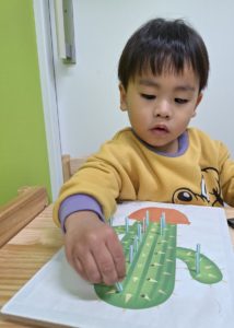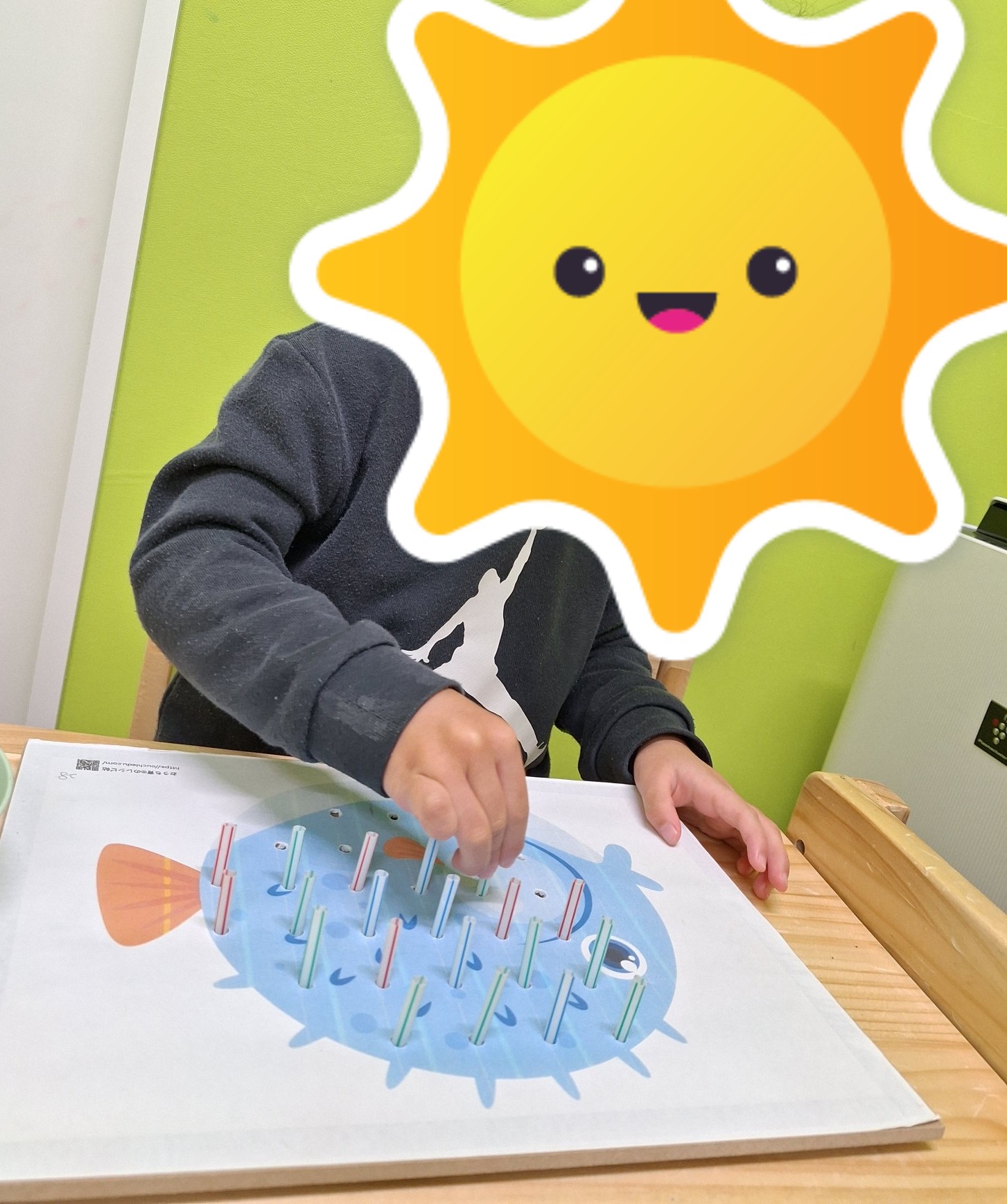 午後は個別とお絵描き・ペッタブロックのコーナー遊びをしていきました。