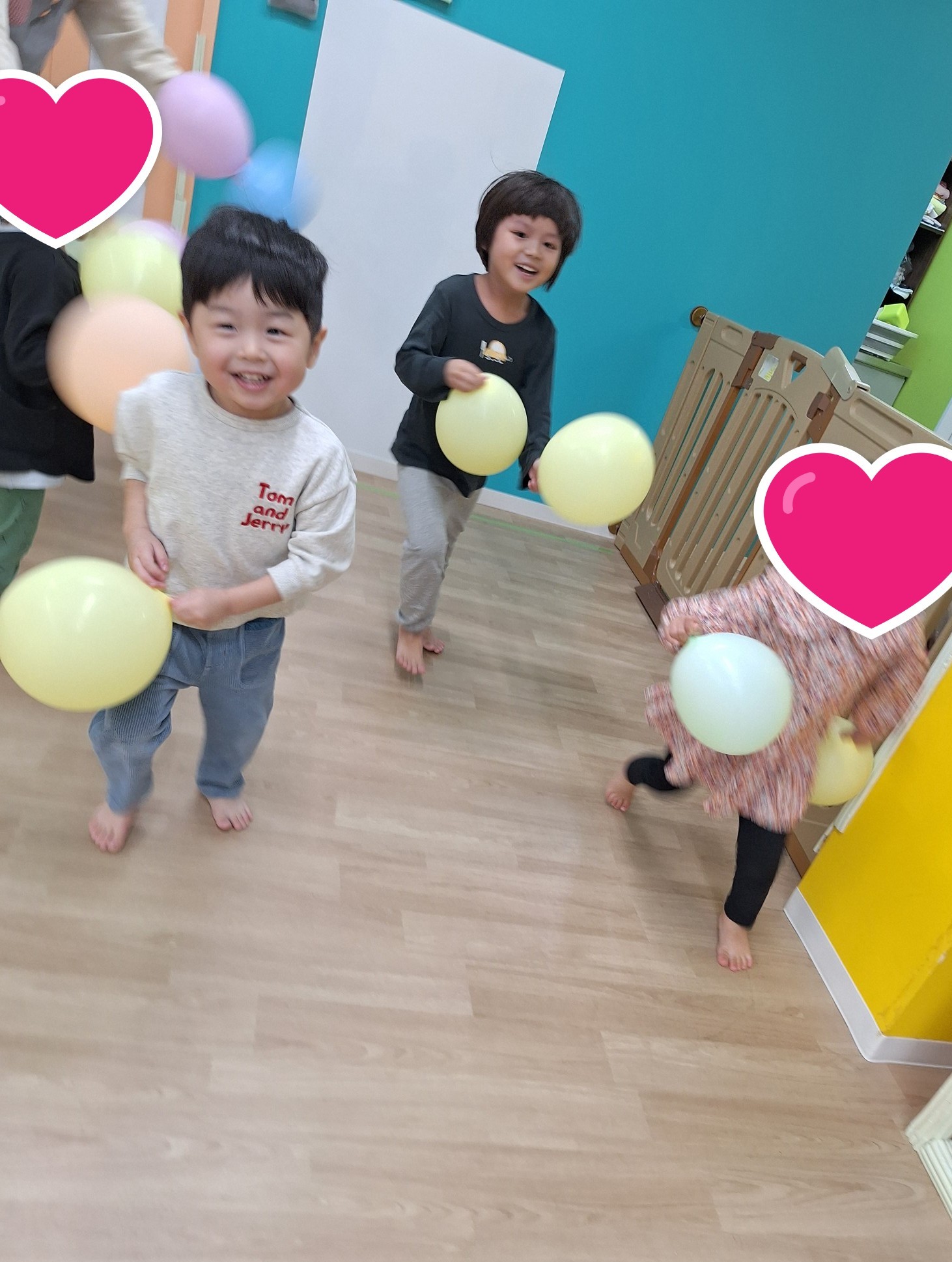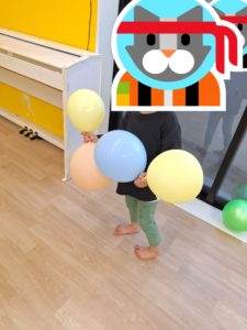 お昼ご飯を食べたら、個別活動と風船・ボール遊びをしました。