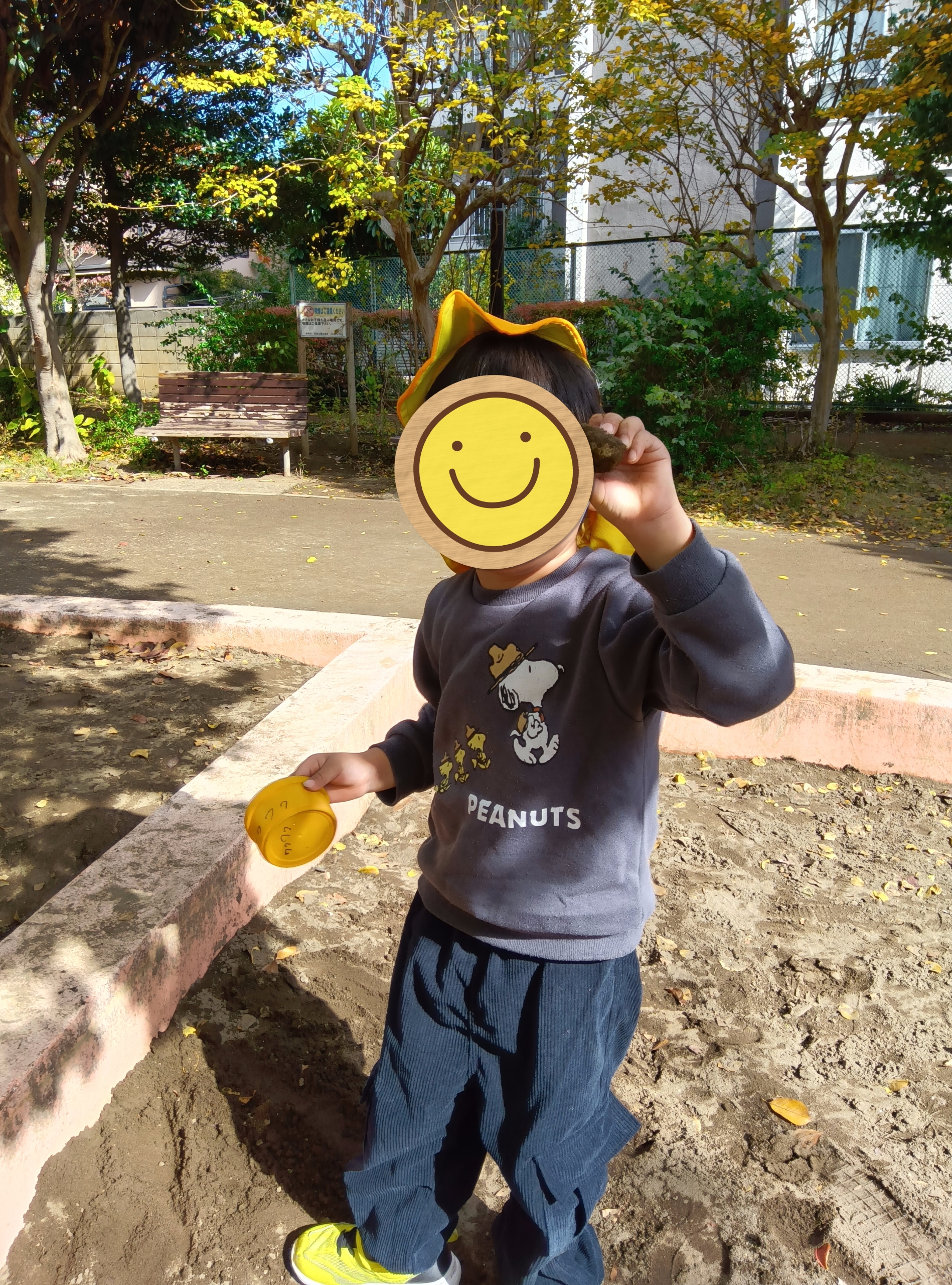 秋の自然! ワクワク 2025.11.10 こんにちは! 今日は公園に行きました。 砂場で遊んでいる様子です↓ 砂場道具を使い掘っていると、 中からどんぐりが出てきました🍂 「見て!あった!」とうれしそうに 知らせてくれました。 また、見つけたどんぐりを砂場の縁に綺麗に 並べていく姿も見られました! 砂場の中から大きな石を発見! 記念にはいチーズ✨️ 砂場には黄色や赤に色付き始めている 落ち葉もあり、落ち葉をカップにたっぷりと 集めていました。 秋の自然に触れることができた一日でした♪ せんかわ