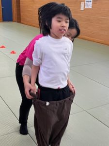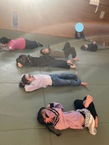 🔥柔道場で体を動かす🔥 りぼんU 2025.11.12 今日は、柔道場へ行って、広いスペースでのびのびと体を動かして遊んできました🎵 ラジオ体操・柔軟体操をしてから、 全速力でタッチラン!!!!しました✨速い、速い、、、そして何往復もして止まらない、、、子ども達のスタミナに驚かされました(笑) みんな大好き『巾着ジャンプ』では、安定した大ジャンプで上手にピョンピョンと進む子がいましたよ💮 休憩中の、のんびりした様子はこちらです♨笑 りぼんU