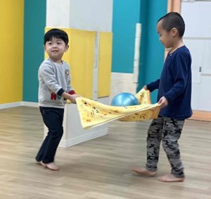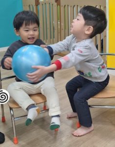 今週の午前中の活動はボールリレーをしています。今日もボールで色々な遊びをしましたよ。
