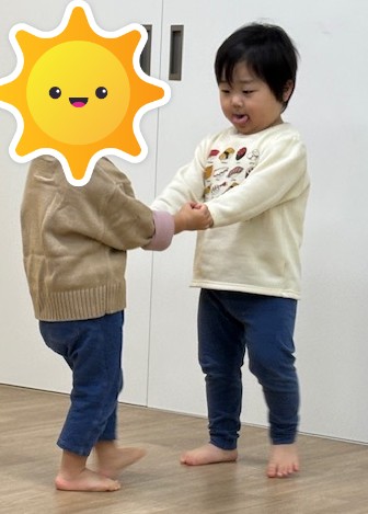 今日の可愛いひとコマです。「一緒にあそぼう」「手をつないで」お互いに可愛い笑顔を見せあっていましたよ☆