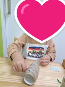 個別活動では、毛糸を巻き付けて、トナカイや雪だるまを作りました。